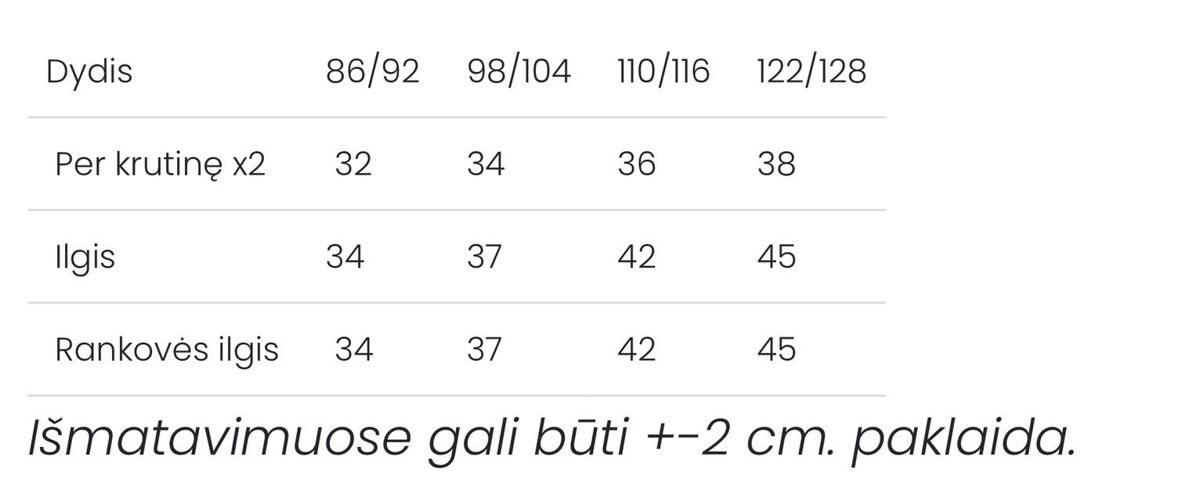 Sudėtis: 95% medvilnė (+/- 5%)/ 5% elastanas (+/-5%)