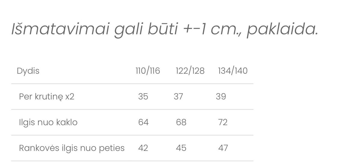 Suknytė truputį platėjanti į apačią. Medvilninė medžiaga labai maloni prie kūno, kvėpuojanti. Iškirtinis paveiksliukas priekyje, kuris patiks ir nudžiugins mažąją princesę. Puikiai tiks kasdieniam nešiojimui, nes medžiaga lengvai prižiūrima, puikiai skalbiasi. Pagaminta Lietuvoje.